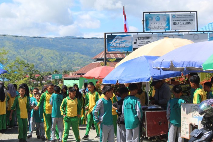 Kerinci – Suasana berbeda tampak di lingkungan MTsN 1 Kerinci saat jam istirahat tiba. Para siswa memanfaatkan waktu rehat dengan penuh keceriaan untuk berburu jajanan favorit di sekitar area madrasah.