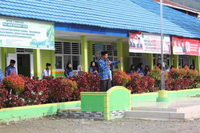 Kerinci — MTsN 1 Kerinci melaksanakan upacara bendera rutin pada hari Senin di halaman madrasah. Upacara berlangsung dengan tertib dan khidmat, diikuti oleh seluruh peserta didik, dewan guru, serta tenaga kependidikan.