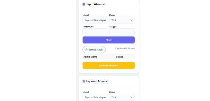 Melalui sistem ini, guru dapat melakukan absensi siswa secara real-time, menginput nilai akademik, serta melakukan penilaian karakter peserta didik hanya melalui perangkat digital dalam satu genggaman tangan. Kehadiran Administrasi Guru Digital ini sekaligus mengakhiri ketergantungan pada buku absensi manual, sehingga pengelolaan data menjadi lebih rapi, aman, dan terintegrasi.