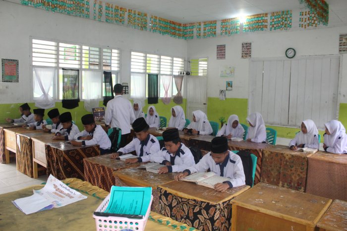 Kerinci, 24 Februari 2026 – Suasana pagi yang tenang dan penuh keberkahan terasa di lingkungan MTsN 1 Kerinci saat para siswa mengikuti kegiatan tadarus Al-Qur’an sebelum memulai pembelajaran. Lantunan ayat suci terdengar merdu dari setiap sudut kelas, menciptakan nuansa religius yang menenangkan hati.