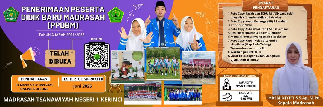 Selamat Datang di Website Resmi MTSN 1 Kerinci # Terwujudnya Madrasah yang Beriman dan Bertaqwa,Unggul dalam IPTEK,Berprestasi, Kreatif dan Berbudaya Lingkungan